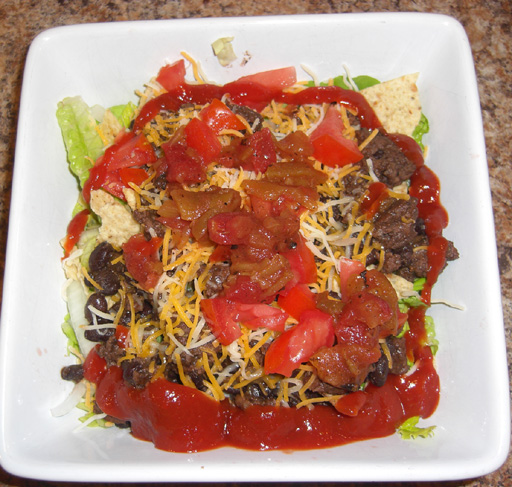 BLACK BEAN TACO SALAD Delicious and cool, this slightly spicy salad can be served for lunch or dinner. It is healthy and filling. Another family favorite!! |