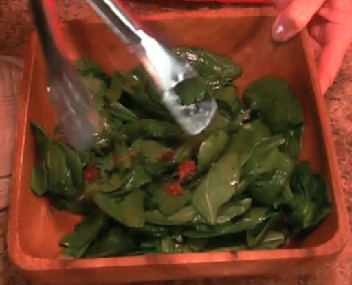 WILTED SPINACH SALAD Fresh spinach leaves are tossed with warm bacon dressing. Great served with Lasagna Roll Ups |